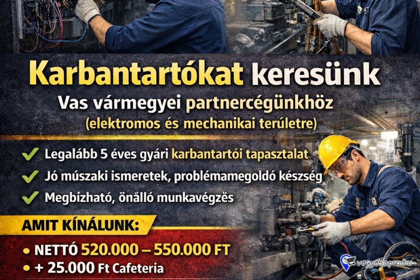 Elektromos és Mechanikus karbantartókat keresünk vas vármegyei partnereink részére!
