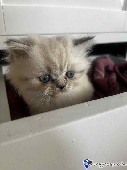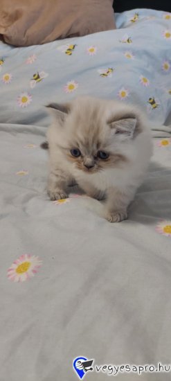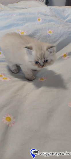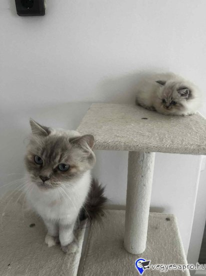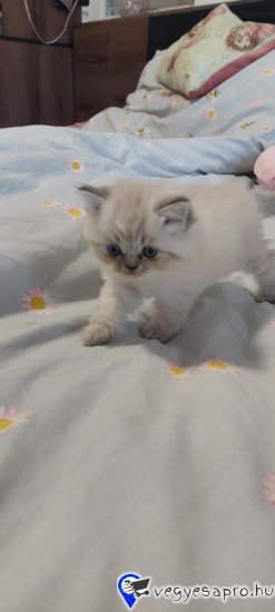 Eladó 1 Blue lynx point Ragdoll kislány cica. Január 6.-án töltik be a 10 hetes kort, koruknak megfelelő oltással, féregtelenítve. A Ragdoll híresen nyugodt és kedves természetű, sokszor ölebként viselkedő macskafajta. A blue lynx point színváltozat ezt a jellegét egy különlegesen elegáns, finoman csíkozott mintázattal egészíti ki. A Blue Lynx Point azt jelenti, hogy a cica fülein, pofiján, farkán és lábvégein kékesszürke árnyalatú pontszín jelenik meg, amelyet finom, tigrisszerű csíkozottság (lynx mintázat) egészít ki. A test színe általában világos, hideg tónusú krém vagy jeges árnyalatú fehér. Szemük élénk kék, ami a ragdoll fajtaszabvány része. Bundájuk félhosszú, puha, selymes tapintású, és kevésbé hajlamos a filcesedésre. A ragdoll cicák kifejezetten nyugodt, szelíd természetű macskák. Nagyon emberközpontúak, sokszor ölbe ülnek vagy elernyednek, amikor felemelik őket (innen ered a nevük: „rongybaba”). Általában jól kijönnek más macskákkal, kutyákkal és gyerekekkel is. Nem annyira bohókásak, mint a red pointok, inkább nyugodt, hűséges, családközpontú típusok, kiegyensúlyozott játékossággal. A lynx mintázatú ragdollokat gyakran tartják nagyon okos, kedves és érzelmileg érzékeny cicáknak.