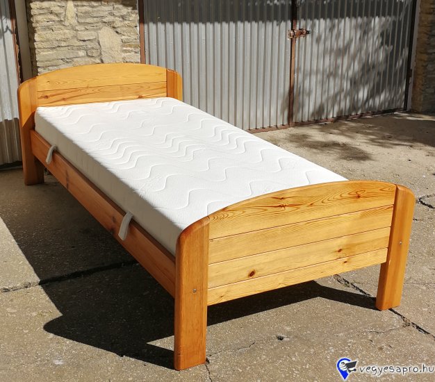Vastag fenyőfából készült 90x200cm ágy, ráccsal, jó állapotú és jó minőségű matraccal eladó.