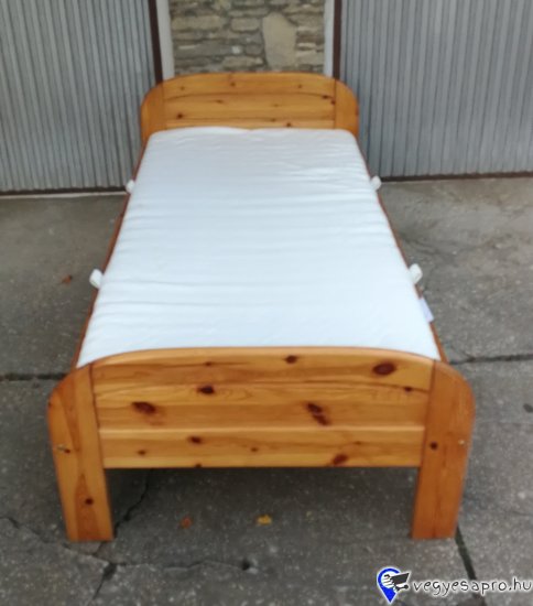 Jó állapotban lévő fenyő ágy 90x200cm, ráccsal, jó állapotú ,mosható huzatú matraccal eladó a képen látható állapotban.