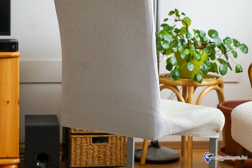Masszív fém keret, rugalmas hátfal, gumírozott talp. A szövet huzat alatti műbőr borítás már erezett, de nem látszik a huzat miatt..