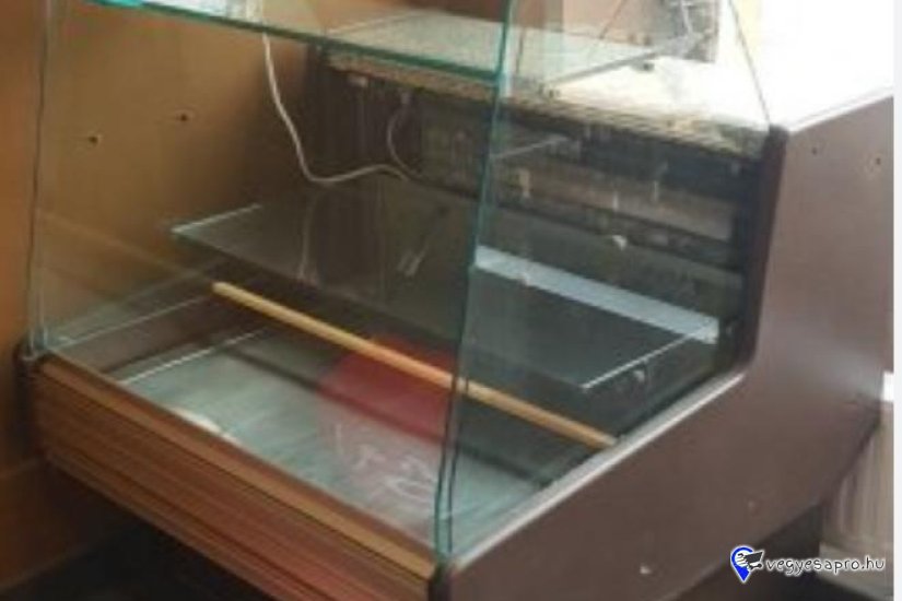Eladó a képen látható 100cm. széles hajlított, ívelt üveges, jó állapotban lévő süteményes pult.