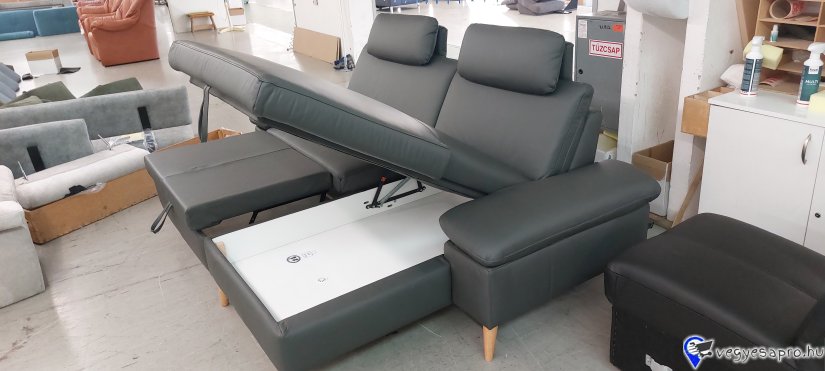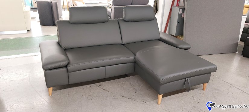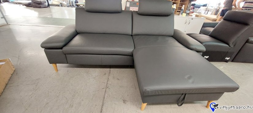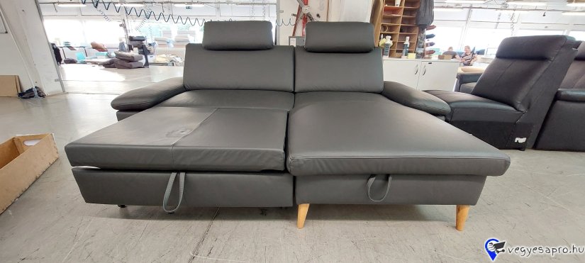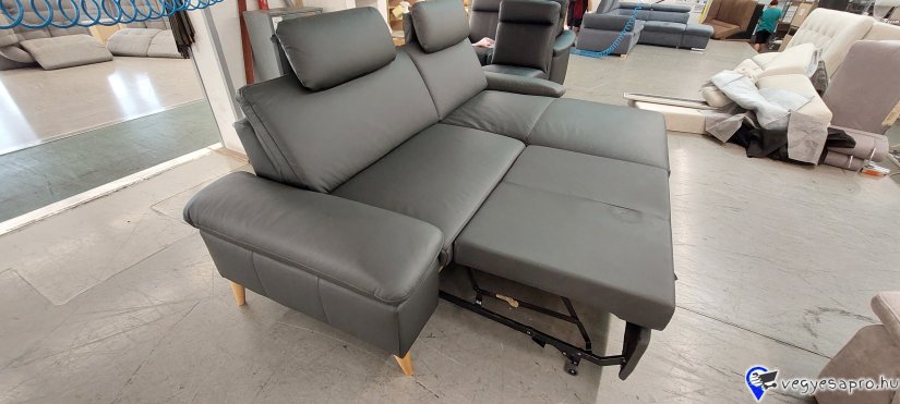 Sötétszürke bőr, fejtámlák, kihúzható fekvőfelület.