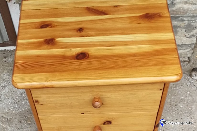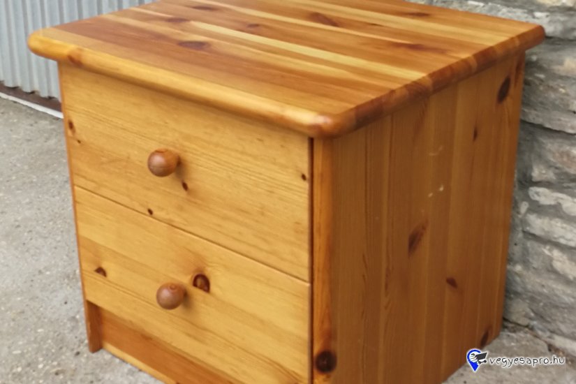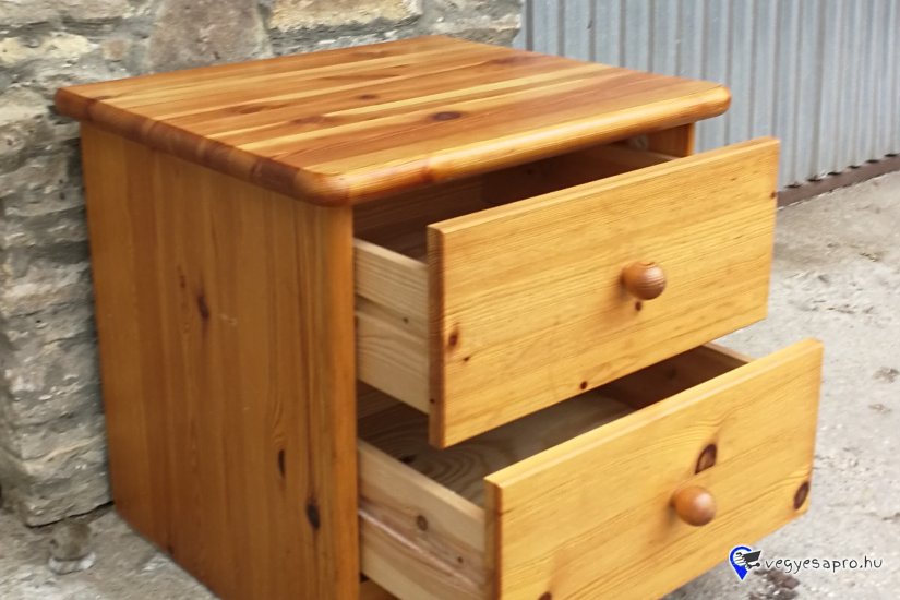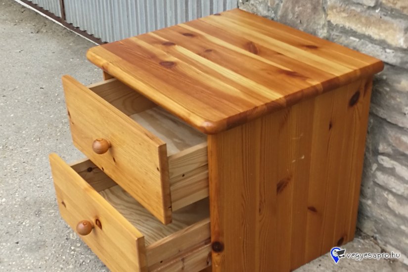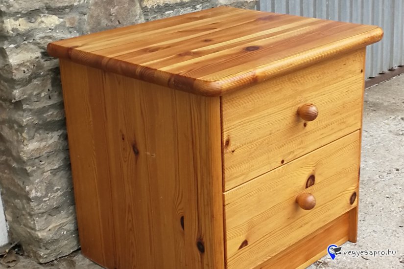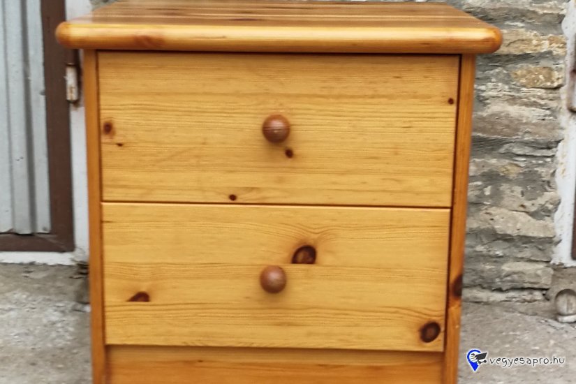Fenyőfából készült éjjeliszekrény 2 fiókkal eladó a képen látható állapotban.