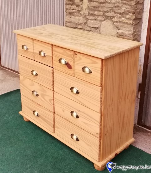 Fenyő komód 8 fiókkal, fém fogantyúkkal