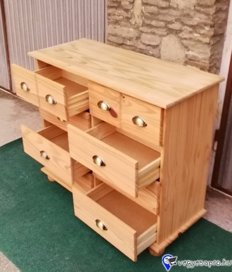 Jó állapotban lévő natúr 8 fiókos fenyő komód, fém fogantyúkkal eladó.