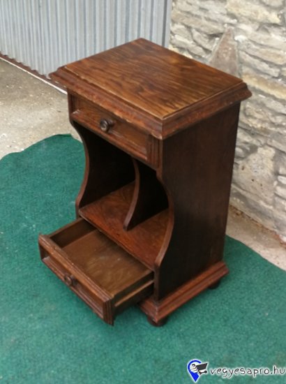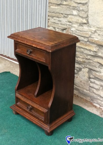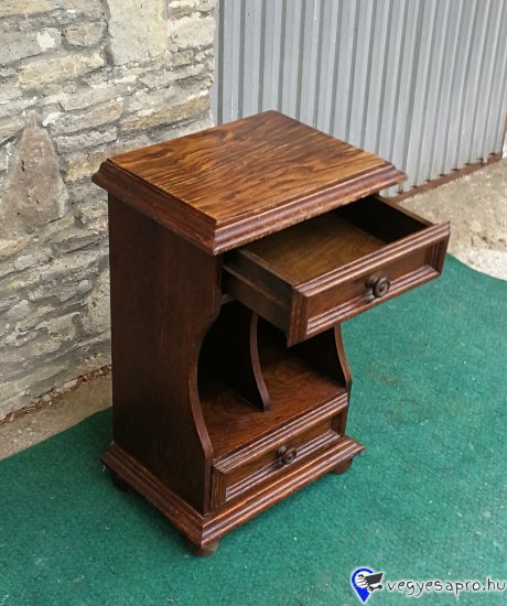 Tölgy furnérozású kis újságtartós kis szekrény , két fiókkal eladó a képen látható állapotban.