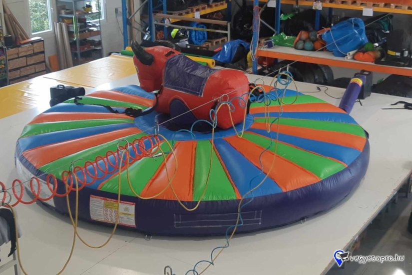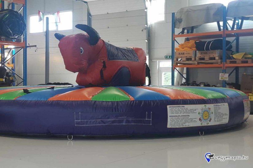 Ez a rodeó bika kifejezetten gyermekek számára készült, hogy ők is kipróbálhassák magukat a rodeók kemény világában! Ebben a játékban nincsenek mechanikus tartozékok, a bika is felfújt és emberi erő hatására mozgatható a húzóhevederek segítségével.
