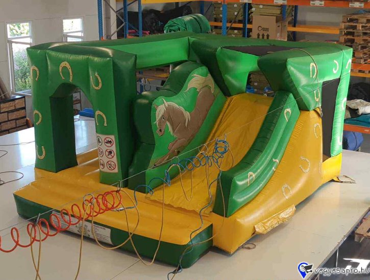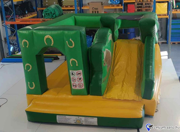 Eladó Lovas Csúszdás Ugráló (Légvár) Gyártási év: 2022 Mérete: 4m x 4,5m x 2,5m Állapota: újszerű Ára: 899.000 Ft+ÁFA Tartozékok: befúvó motor, rögzítő vascövekek, műszaki vizsga (érvényes: 2028.03.), javító készlet, alátét fólia, tároló zsák Átvételi időpont: Azonnal vihető