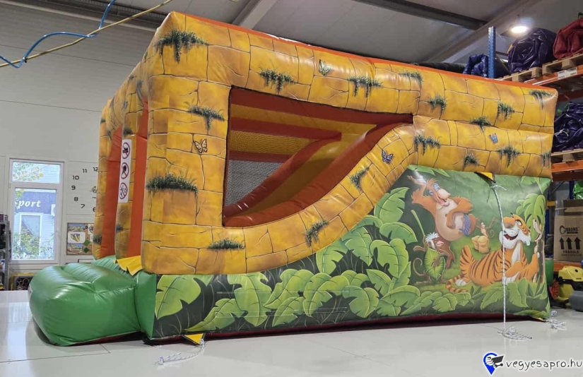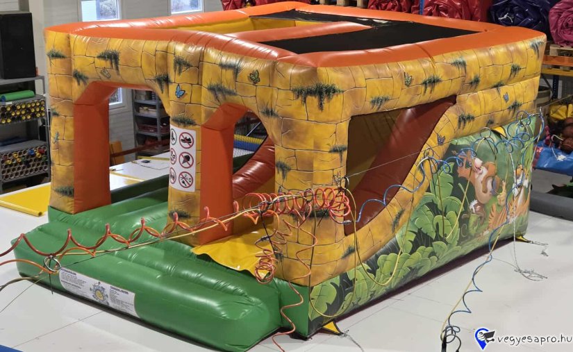 Eladó Dzsungel Csúszdás Ugráló Gyártási év: 2025 Mérete: 4m x 4,7m x 2,5m Állapota: új, angol ponyvából Ára: 1.150.000 Ft+ÁFA Tartozékok: befúvó motor, rögzítő vascövekek, műszaki vizsga, javító készlet Átvételi időpont: Azonnal vihető