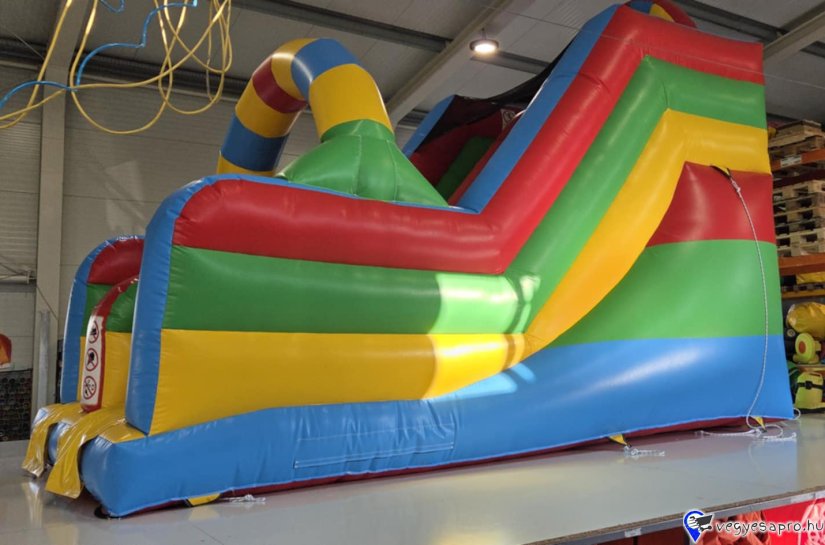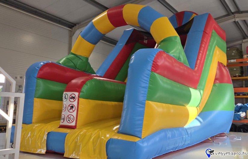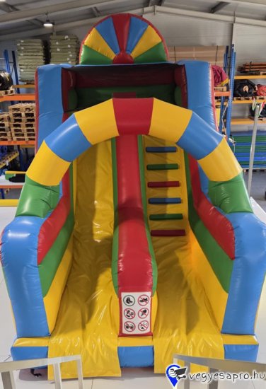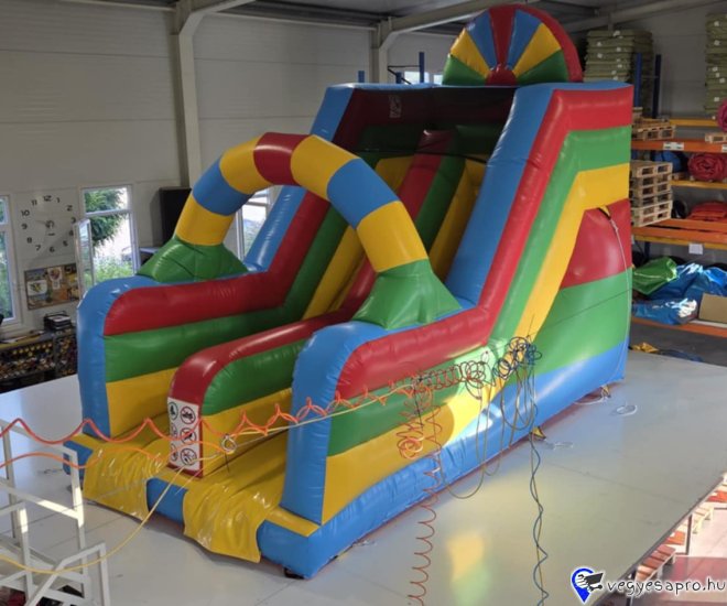 Eladó Szivárványos Csúszda (Légvár) Gyártási év: 2025.08. Mérete: 4m x 6m x 5m Állapota: új, angol ponyvából készült Ára: 1.099.000 Ft+ÁFA Tartozékok: befúvó motor, rögzítő vascövekek, műszaki vizsga, (érvényessége: 2028.08.), javító készlet, Átvételi időpont: Azonnal vihető