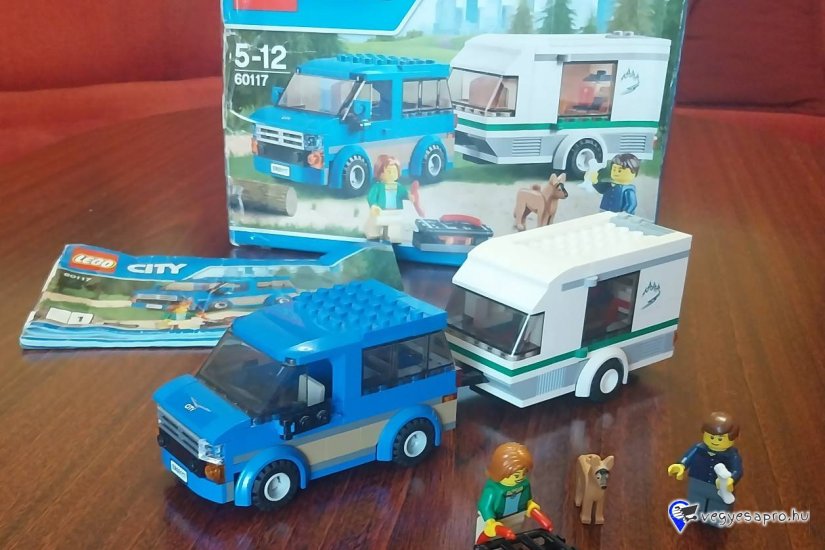 LEGO City - Furgon és lakókocsi (60117) készlet, használt, a képen látható állapotban. Összeépítve, dobozzal és könyvvel együtt.