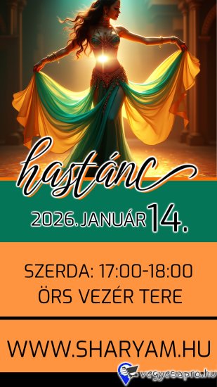 ÚJPESTEN újra! 2026. január 17. - 4 hetes INTENZÍV HÉTVÉGI HASTÁNC Ha szeretnéd hasznosan és vagányan indítani a szombat reggeleidet, szívesen vennél egy kis napindító agy- és testmozgást, ráadásul egy igazán különleges és a világ egyik legnőiesebb mozgásformáját választanád ehhez, akkor jelentkezz minél hamarabb! Lehet, hogy félálomban érkezel, de frissen távozol:). Legyen ez a női erőd első kávéja... 4 hét intenzív HASTÁNC órák - látványos fejlődés - igényes környezet - vidám és türelmes oktató! Testalkatod, korod nem számít, a lelkesedésed annál inkább:). Valamint ne maradj le ÚJ tanfolyamunkról az ÖRS VEZÉR TÉREN is! Jelentkezz még ma! További részletek és jelentkezés: www.sharyam.hu