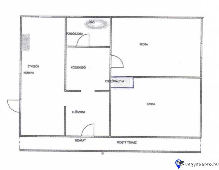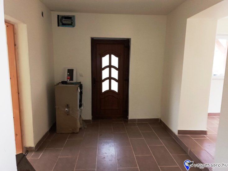 Az előszobában fatüzeléses kályha adja a meleget. A nyílászárók új műanyag hőszigetelt üvegezésűek.