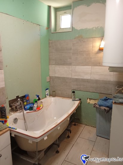 A fürdőszobába új kád, a még be nem épített zuhanykabin is rendelkezésre áll