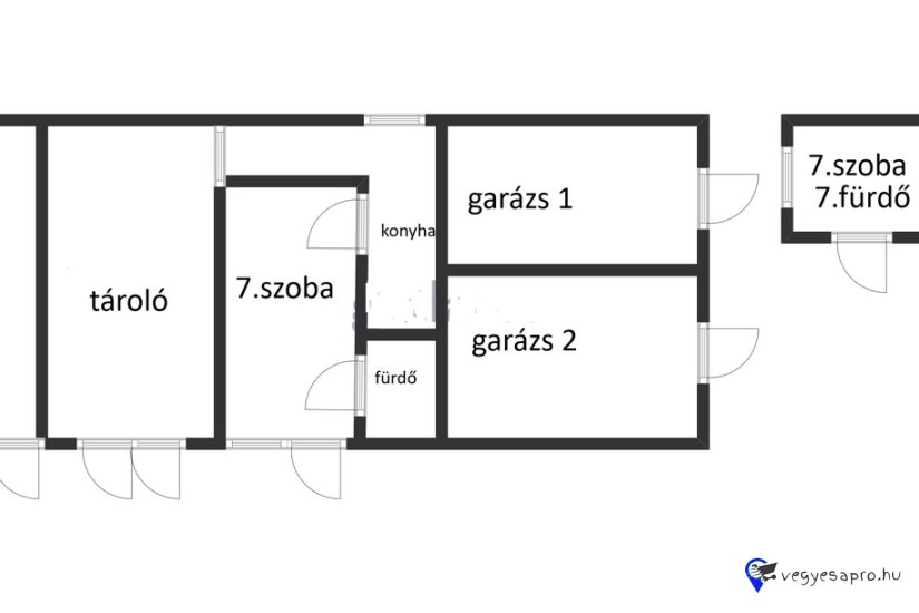 Ez egy 280 m² alapterületű apartmanház, 4 külön bejáratú, a teraszról megközelíthető, berendezett apartmannal, dupla garázzsal, hatalmas terasszal, bútorozva, gázfűtéssel (a tetőtér beépítésének lehetőségével), 1848 m²-es telekkel, hatalmas gyümölcsös kerttel (még egy további ház építésére is alkalmas), különálló kis házzal, pincével, raktárhelyiségekkel, pavilonnal.