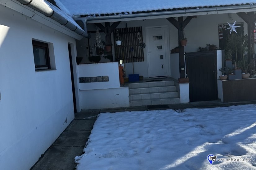 A sövénnyel körbeültetett, saroktelken lévő, rendezett szomszédsággal ???? körülvett ingatlan 2 bejárattal rendelkezik, egyik oldalon -lakóövezeti utcából - kocsibejáróval.