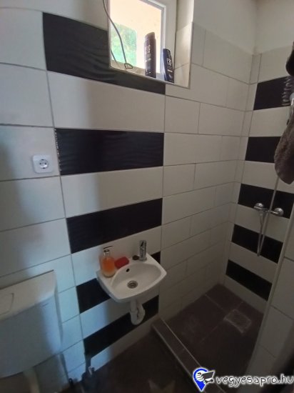 33 m lakótér, praktikus elrendezéssel. Osztatlan közös telek (2451 m), használati megállapodással,