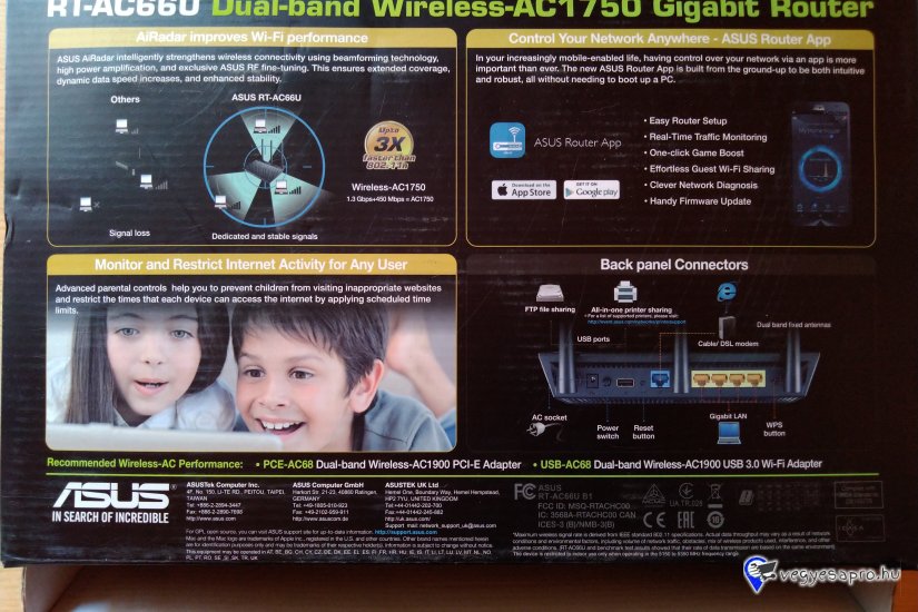 Router (Internet útválasztó) ASUS AC66U_B1 Dual-band Wireless AC1750 Gigabit Gamer Router.