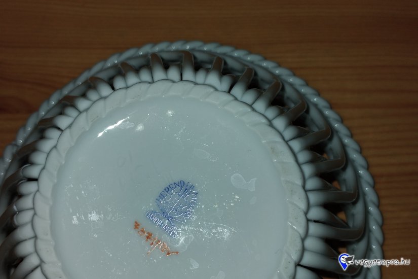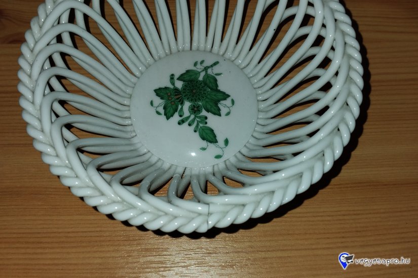 Herendi porcelán áttört tál, középen zöld virág. Ár: 5.000 Ft.