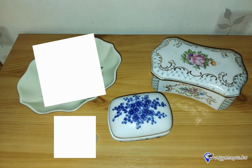 Hollóházi porcelán, bonbonier mérete: 15,5 x 9,5 x 6 cm. Dúsan aranyozott. Ár: 5.000 Ft