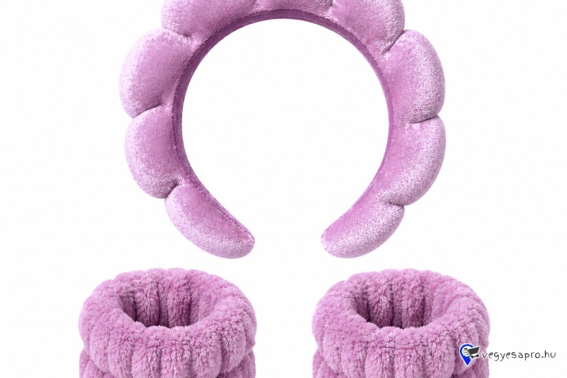 Kozmetikai hajpánt és csuklópánt szett lila 3 db