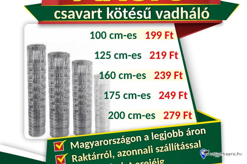 Óriási vadháló akció! Drótfonat, drótháló, vadháló, oszlop, kapu, kerítés