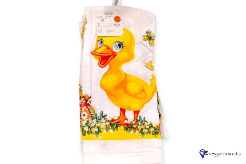 Fehér pamut húsvéti konyharuha sárga kacsával 60x35 cm