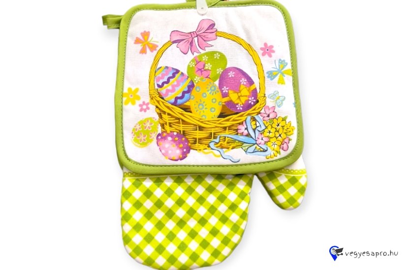Tojásos zöld edényfogó kesztyű és szalvéta szett 2 db-os