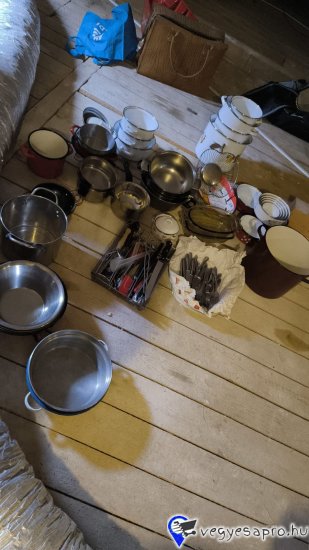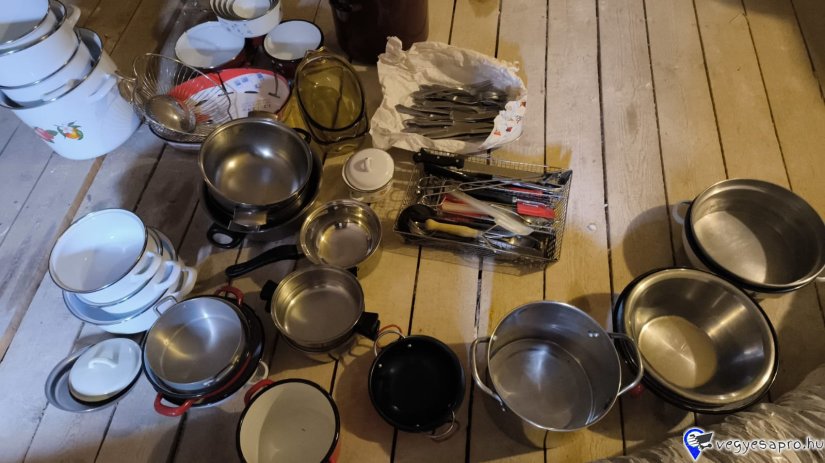 Eladó a képen látható, tejforraló, lábasok ,edények, evőeszközök, edényszáritó egyben.