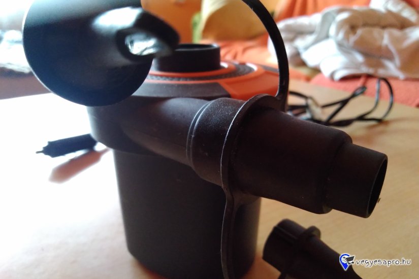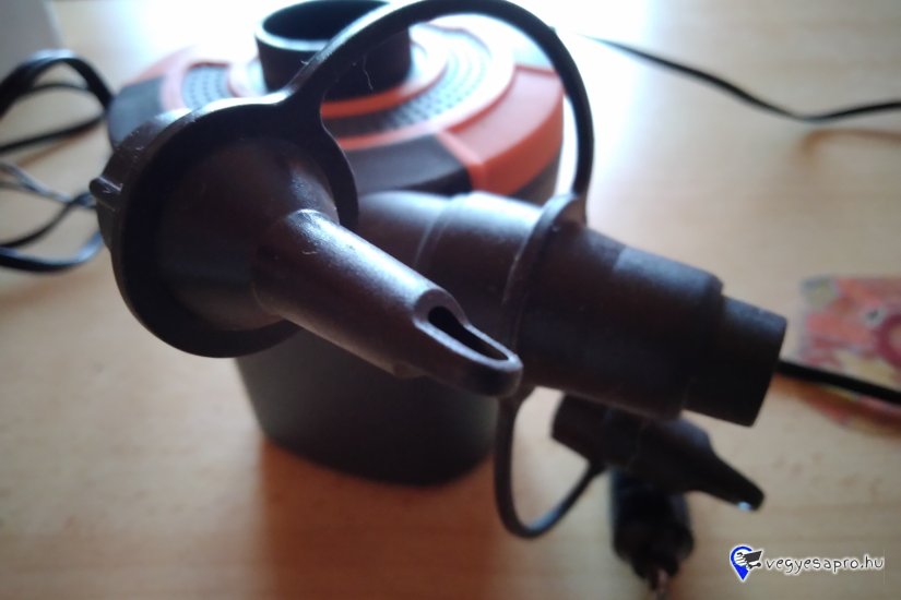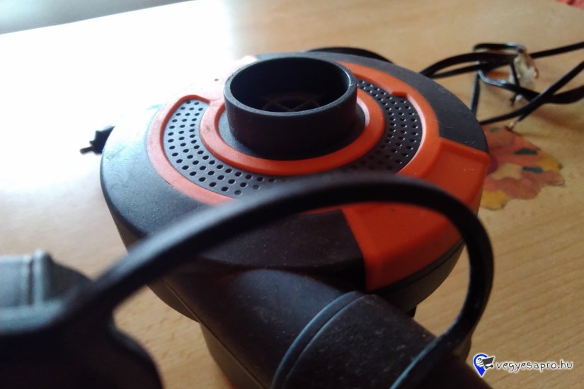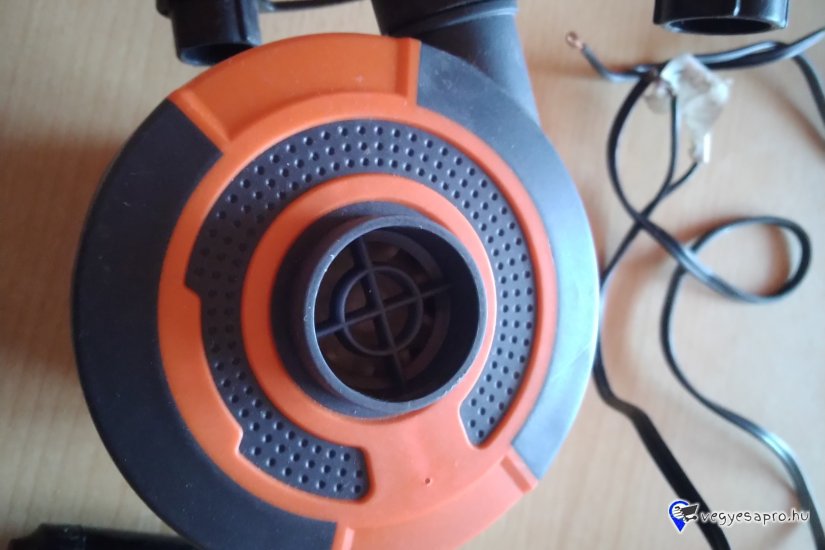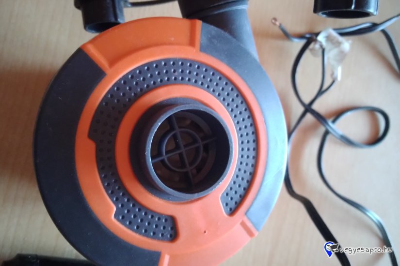 Narancsszínű medence víz szivattyú, ami használt, de szándékosan van a vezeték rajta megbütykölve.