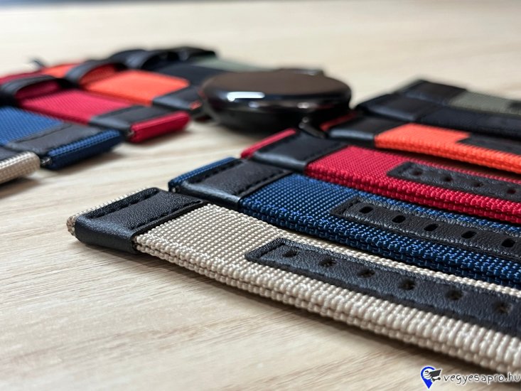 22 mm-es vászon–bőr óraszíj – stílus és tartósság egyben.