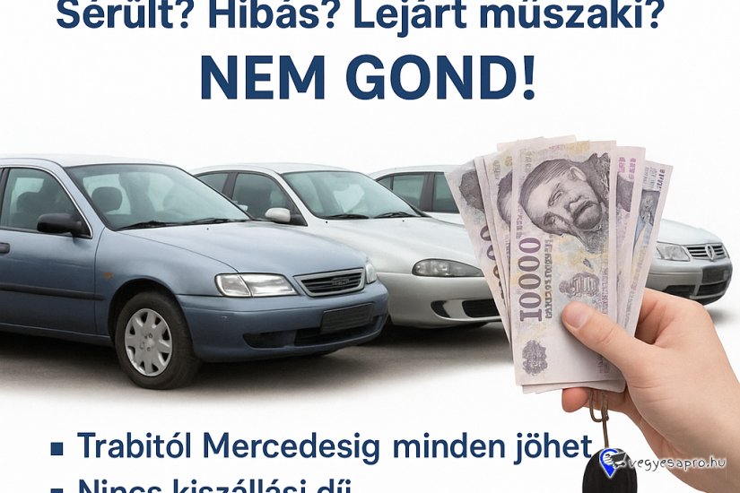 ✔ Sérült, műszaki hibás, álló autók is szóba jöhetnek
