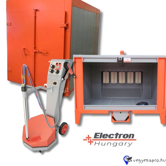 Kis porfestő rendszer "B" 1,5 m-es kemence, 5 filteres kabin, E-Coat Pro pisztoly