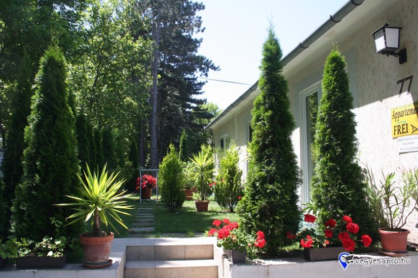 Siófok egyik legfrekventáltabb helyén az Aranyparton, a Balatontól 200m-re, a város központtól, Víztoronytól,vasútállomástól pedig egy 8-10 percnyi sétára található. Szabad és fizető strand 200-400 m, Petőfi sétány mögött a 2. utca.Közel mindenhez, de mégis kellő távolságra a város zajától. A vendégház 2 külön álló épületből áll. A nagyobbik épületben a 2 ágyas apartmanhoz , tusoló, teakonyha és terasz tartozik. Az 5 fős apartmanban 2 szoba,tusoló, konyhasarok/tea kpnyha/ és terasz tartozik. Az udvaron lévő teljesen felszerelt konyha használata. A kisebbik épület 3 külön bejáratú apartmant foglal magába, melyek saját fürdőszobával rendelkeznek, Teljesen felszerelt konyha tartozik a 2 és 3 fős apartmanhoz, ami közös. A 3-4 fős apartmanhoz külön konyha tartozik. Az apartmanok 2-3 illetve 4 fő fogadására alkalmasak. A vendégek teljes biztonságban tudhatják autóikat,mivel parkolási lehetőség az udvarban , illetve a ház előtt az utcán, nem fizetős. Minden szoba led tv-el felszerelt. . WIFI a szobában.